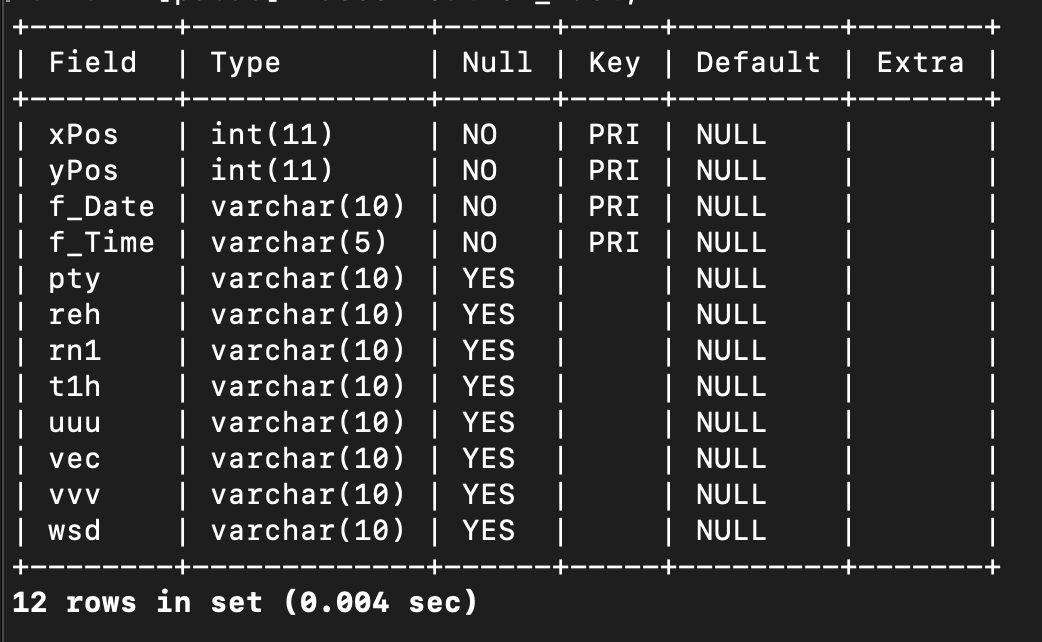DB Table은 추출한 데이터를 담을 수 있고 날짜와 시간을 키 값으로 만들면 된다.