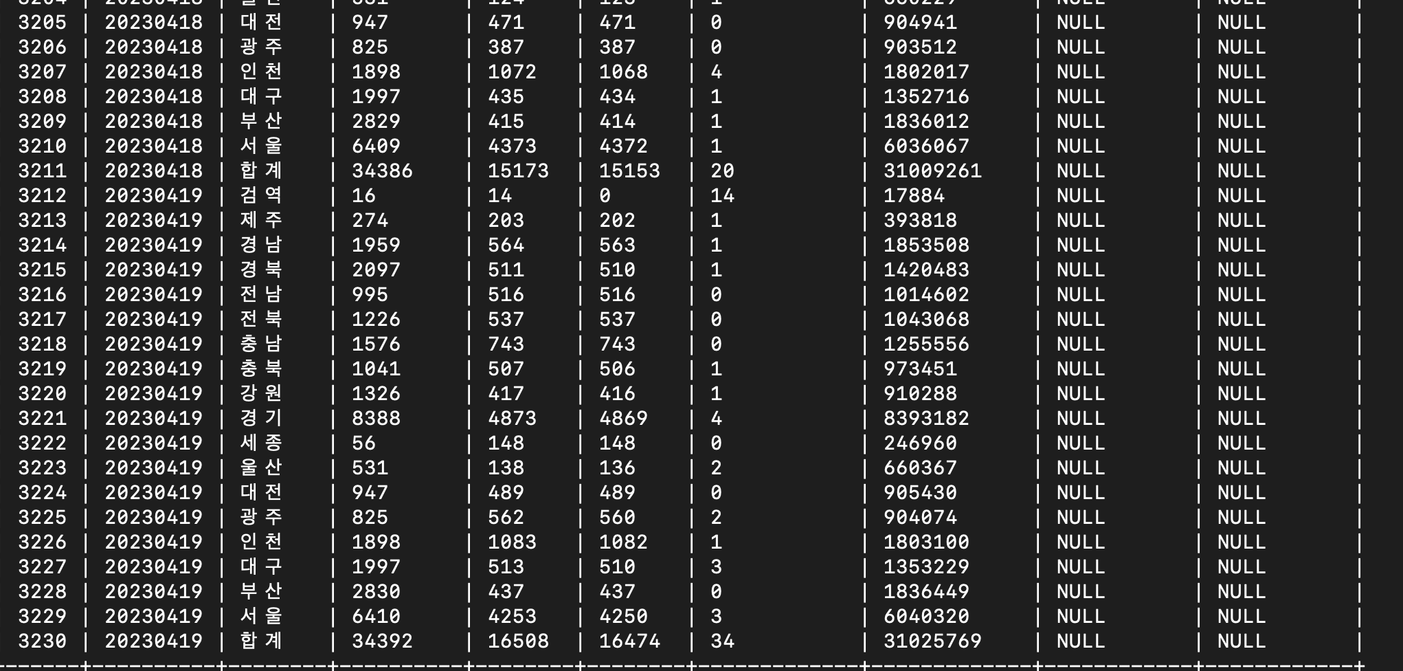 (stdDay, gubun, deathCnt, defCnt, \