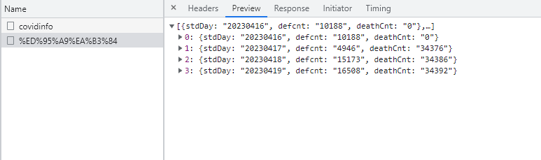 이제 요청한 데이터가 제대로 전달되었다는 것을 확인하였다.