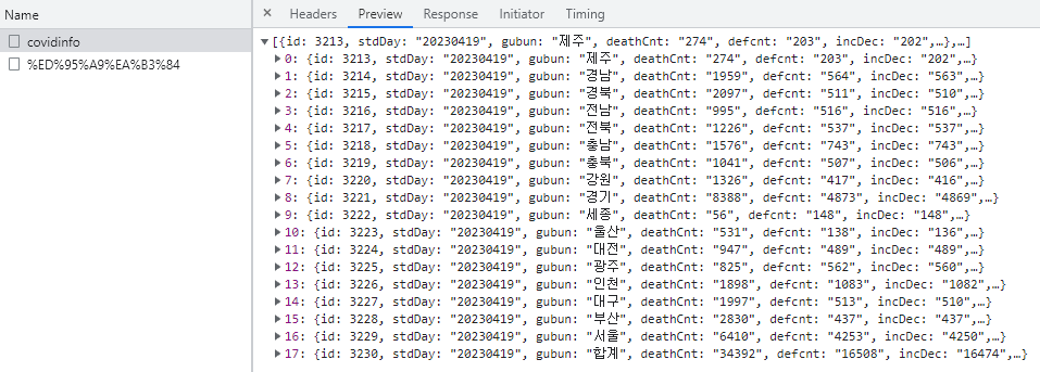 이 코드 /covidinfo 에서