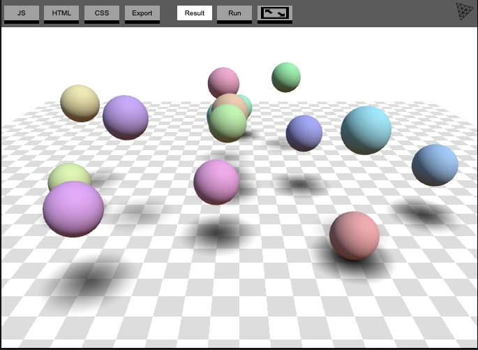 Vue파일로 전환할 예제는 아래 캡처, 탱탱볼 예제이다.