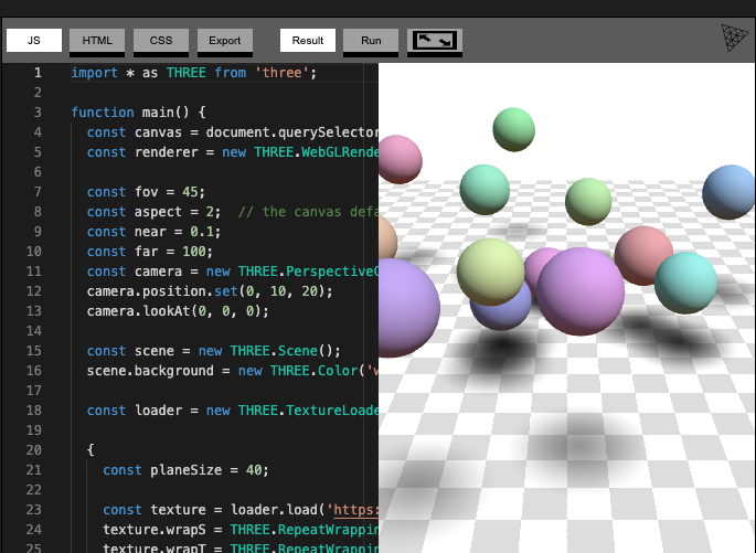 const sphereGeo = new THREE.SphereGeometry(sphereRadius, sphereWidthDivisions, sphereHeightDivisions);